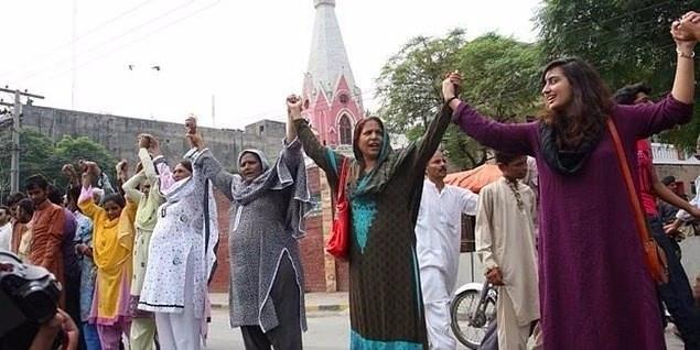 Pakistan'daki Müslümanlar, Hristiyanları korumak için bir insan zinciri oluştururken (2013)