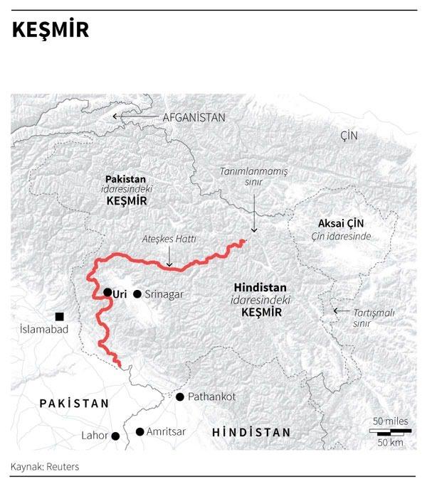 Keşmir'in yüzde 45'i Hindistan'ın, yüzde 35'i Pakistan'ın kontrolünde bulunuyor. Bölgenin yüzde 20'sine ise Çin hakim durumda.