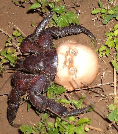 Oyuncak bebeğin kafasını bulan bir yengeç