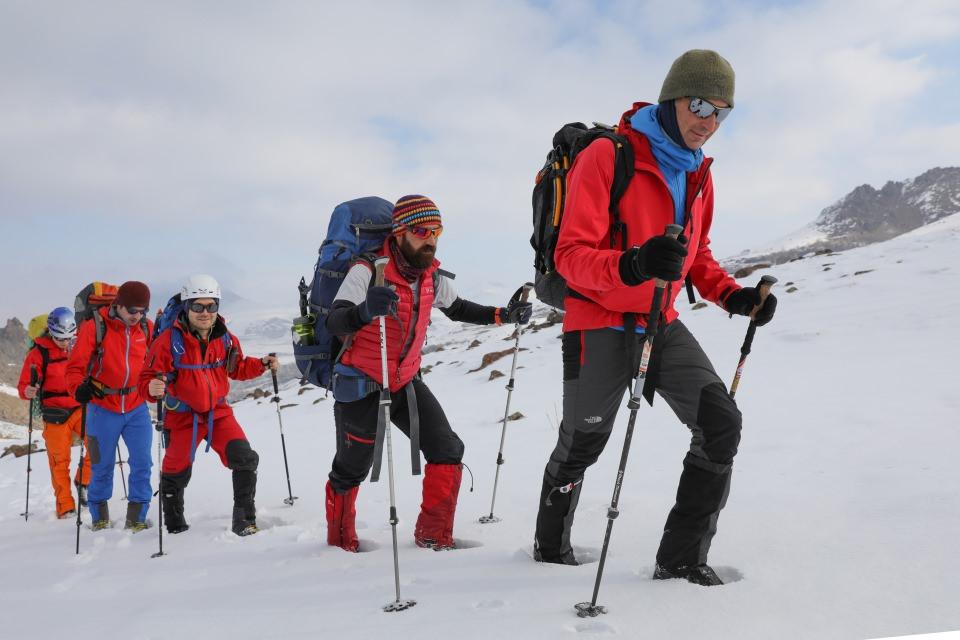 Türkiye'nin önemli dağcılarından Tunç Fındık'ın da aralarında bulunduğu tırmanış ekibi, bölgenin doğa sporları alanındaki zenginliğini tanıtmak amacıyla Erek Dağı'ndaki buz şelalesine tırmanış gerçekleştirdi.