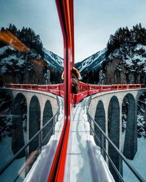 Trenin camlarının güzelleştirdiği bir fotoğraf karesi.