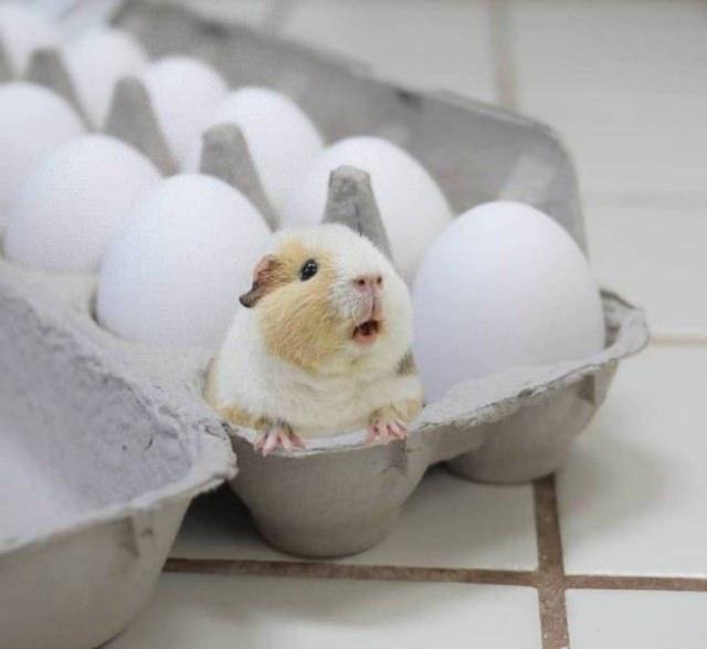 Tavuk yumurtalarının arasında tatlı bir hamster.