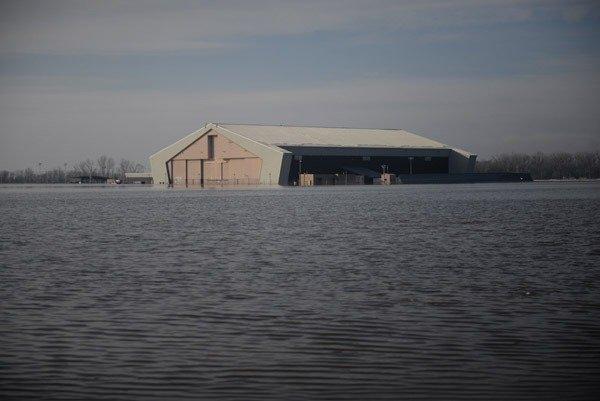 Pistler, hangarlar, her yer... Sular, üsteki 30 binayı adeta yuttu.