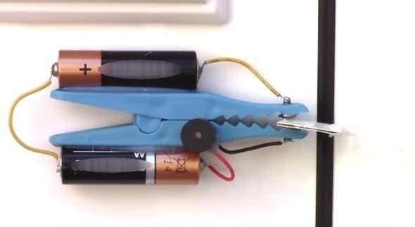 Kapı isteğimiz dışında açıldığı anda karton mandalın ağzından düşecek; iki vida birbirine yapışacak ve alarm çalmaya başlayacak.