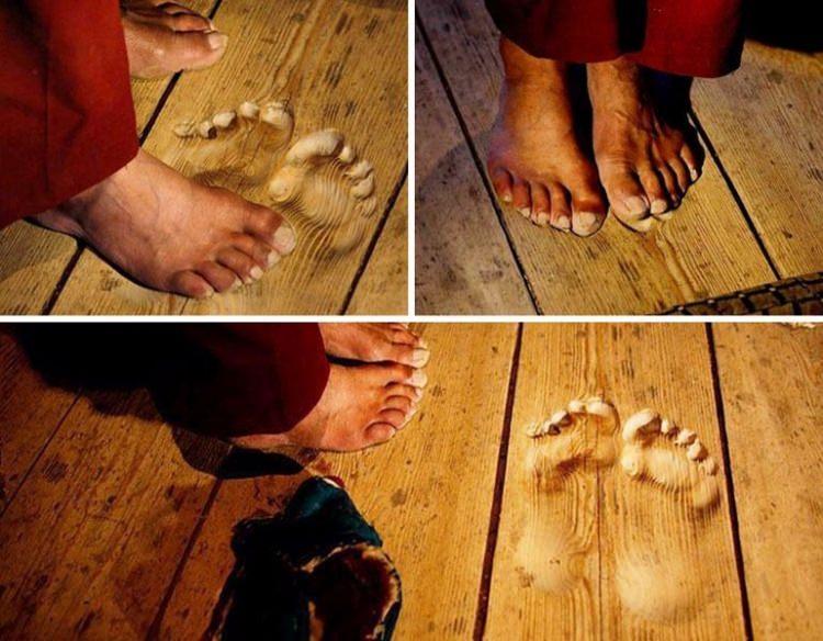 20 yıl boyunca sürekli aynı yerde dua eden bir keşişin ayak izleri.