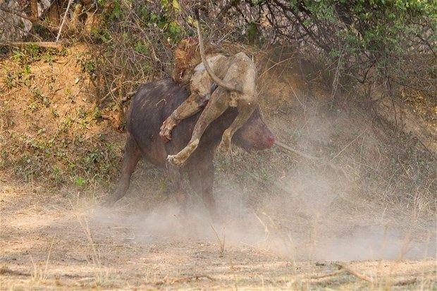 Bufalonun geri adım atmaması üzerine kanlı 'meydan muharebesi' başladı.