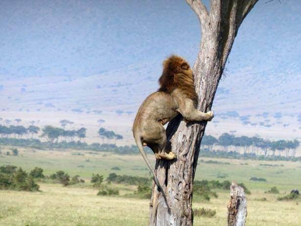 Ormanların kralı Aslan ne kadar korkusuz olsa da bazı durumlarda geri çekilmenin gerektiğini gayet iyi biliyor.