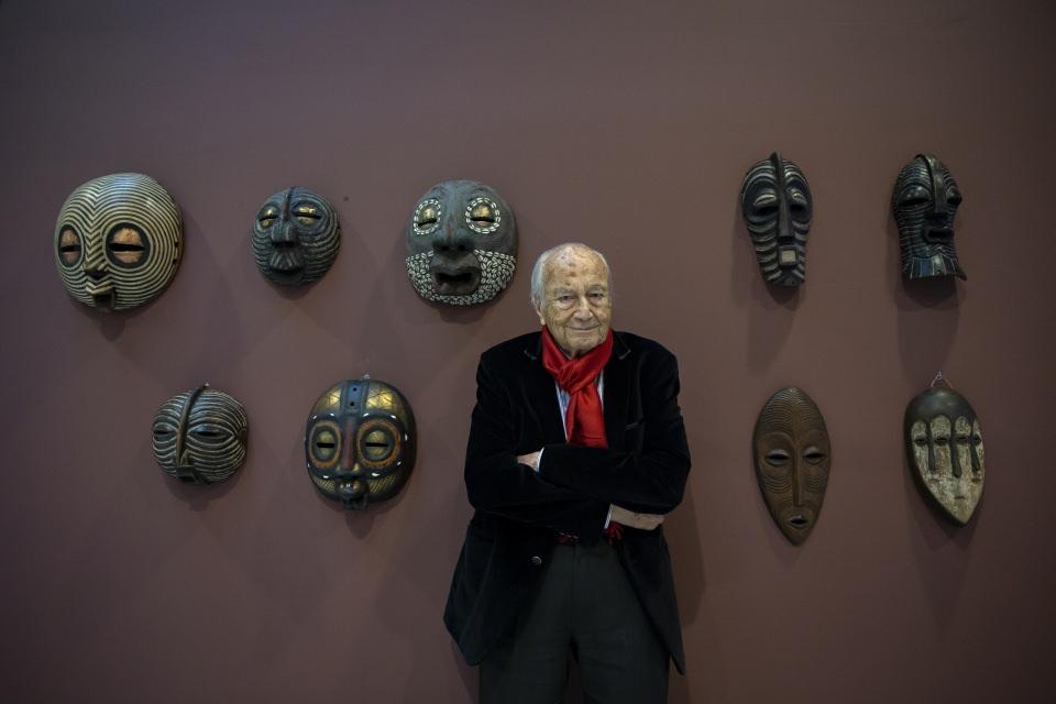 Ahşap oyma maskelerin ağırlıkta olduğu sergide, metal detaylara ve boncuklara yer verilen yapıtlar da eserler arasında bulunuyor. Fil ayağı derisinden yapılan bir maske ise serginin dikkati çeken eserleri arasında öne çıkıyor.