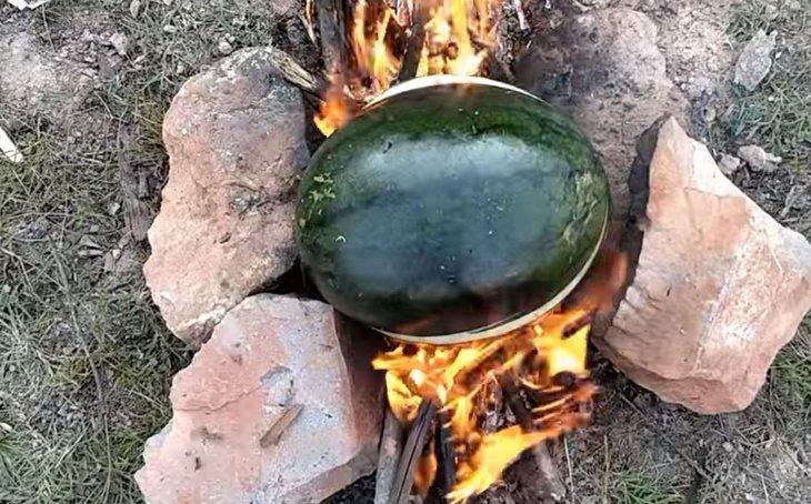 Hindistan cevizi ve karpuzun içinde yemek yaptı!