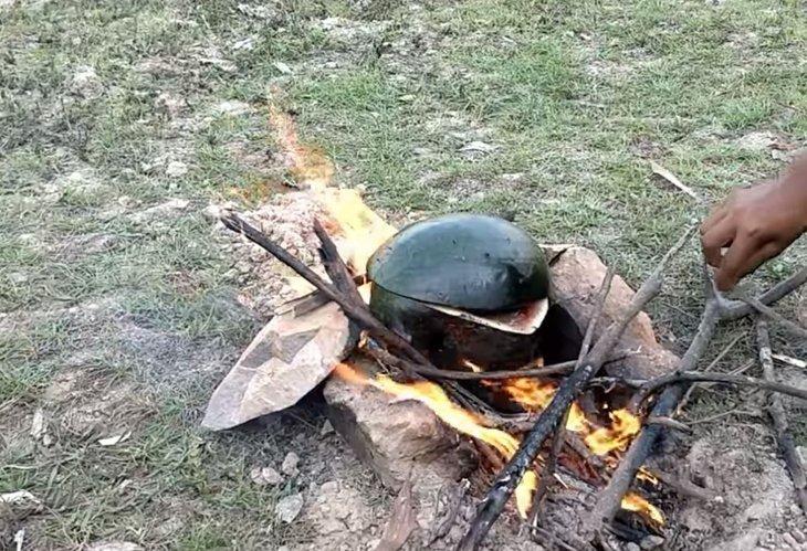Hindistan cevizi ve karpuzun içinde yemek yaptı!