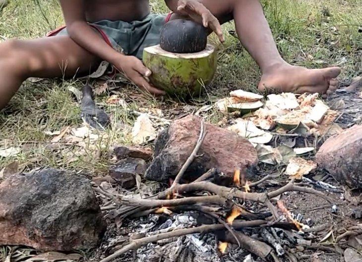 Hindistan cevizi ve karpuzun içinde yemek yaptı!