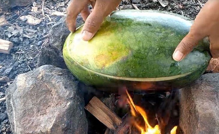 Hindistan cevizi ve karpuzun içinde yemek yaptı!