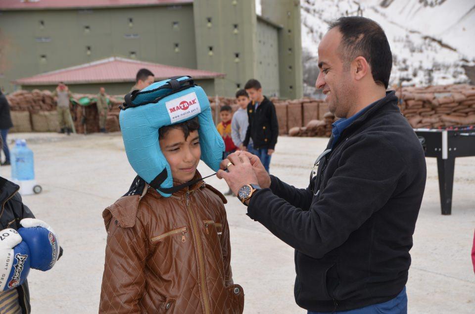 Görevliler, okulun bahçesi olmadığı için etkinliklerini bin 500 rakımlı Dağlıca Hudut Taburundaki helikopter pistinde gerçekleştirdi.