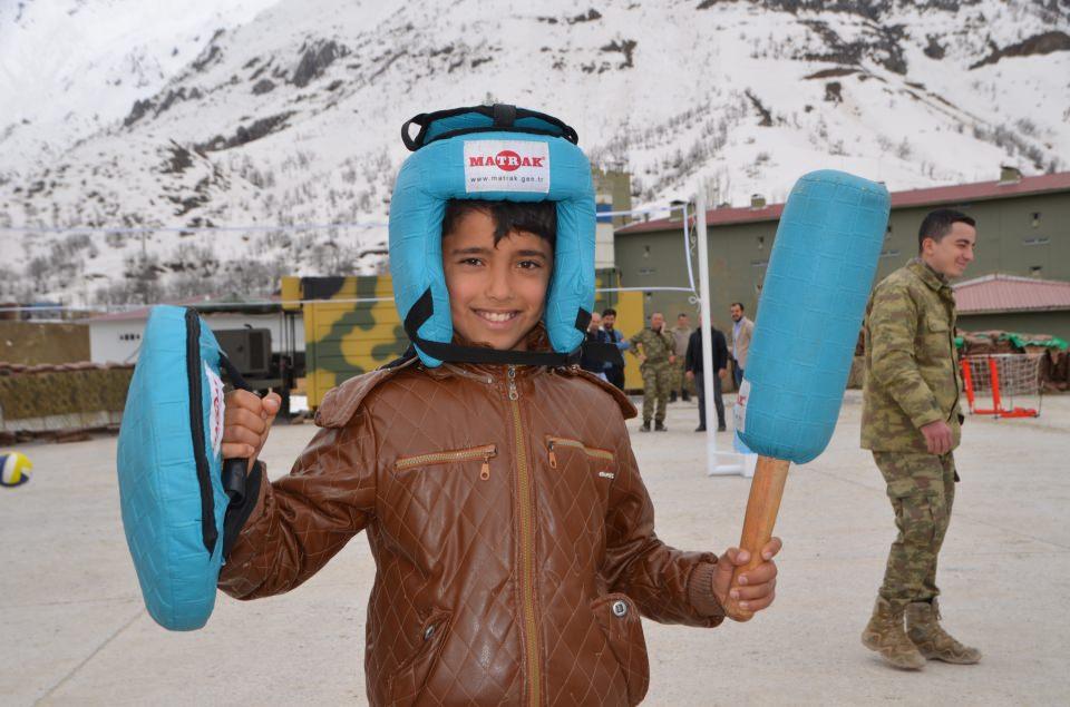Burada 25 öğrenci, askerlerin de katılımıyla satranç, mini golf, voleybol, boks, langırt, dart, okçuluk ve matrak gibi spor ve oyunlarla eğlenceli vakit geçirdi.