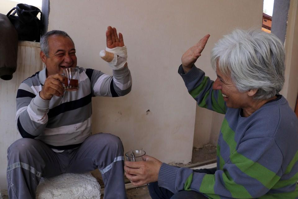 Aydınlı çift 16 yıldır inşaatta birlikte çalışıyor