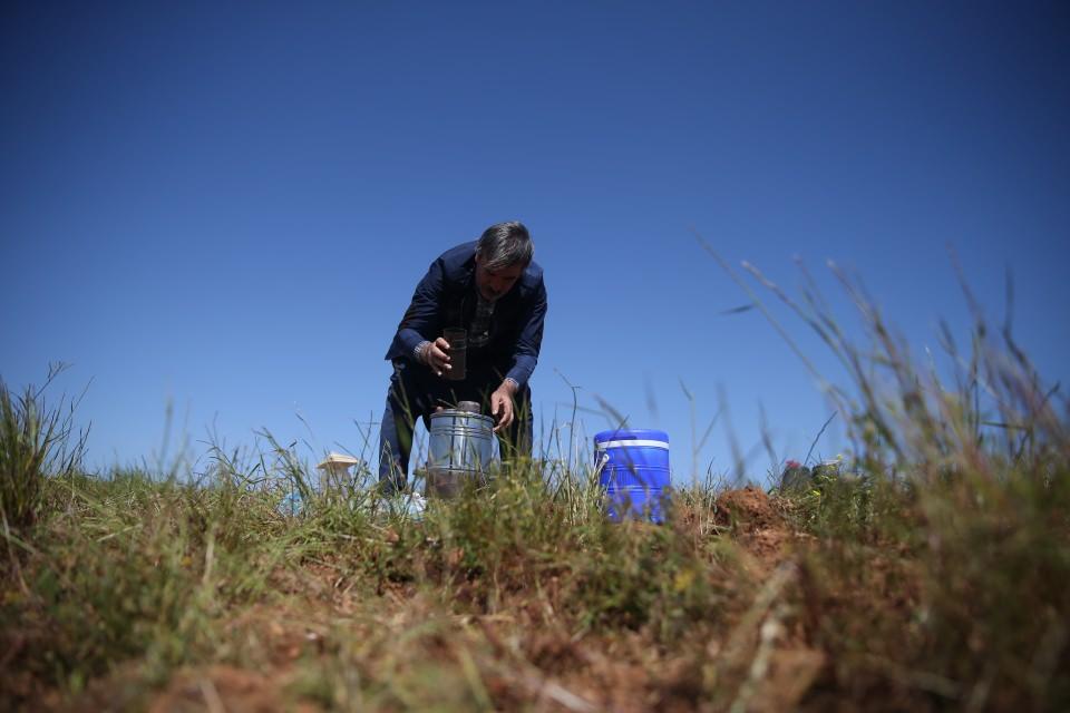 Prof. Dr. Mazhar Bağlı, çalıştığı tarlada AA muhabirine yaptığı açıklamada, toprakla ilgilenmeyi çok sevdiğini ve burada farklı bir huzur bulduğunu ifade etti.