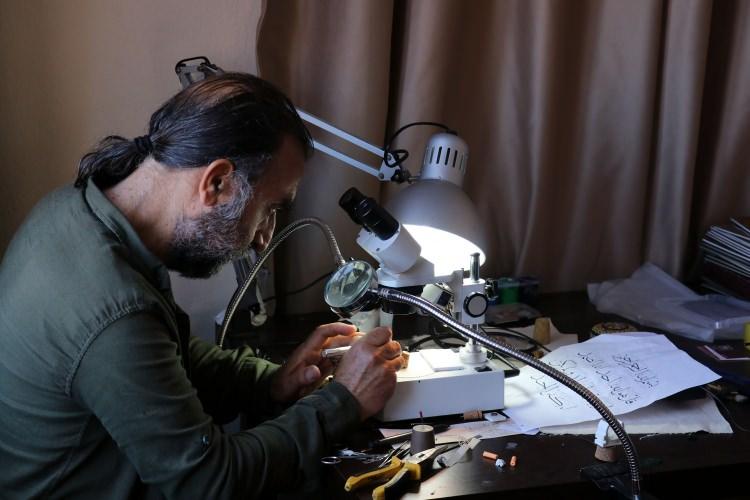 "Fırça olarak piyasa fırçalarını kullanamıyorsunuz. Kullandığım fırça, 0,02 milimetre boyutundaki bir örümcek kılı. Yani tek bir kılla yazdık. Kenarındaki hataları da bir arının iğnesini kullanarak düzelttik. 6 ay içinde yüzlerce kez bozuldu yazımız. Tekrar denedik sabırla, sebat ettik."