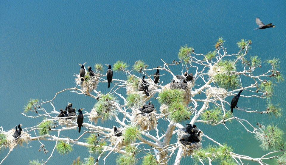 Bölgede gölü çevreleyen dik yamaçlardaki çam ağaçlarına kurulu yuvalarda yüzlerce yavrunun hayata tutunmaya çalıştığını belirten Tekin, şöyle konuştu: