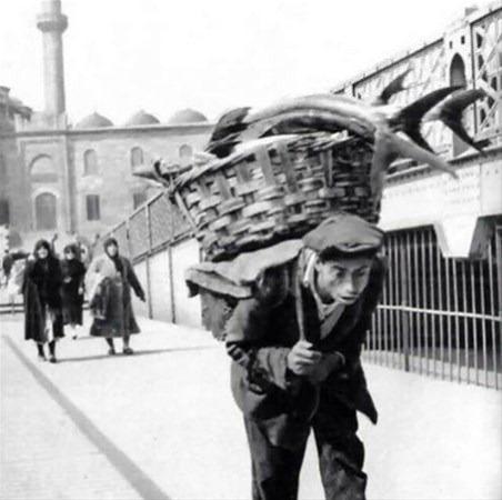 Orkinos taşıyan bir hamal. 1930'lar.