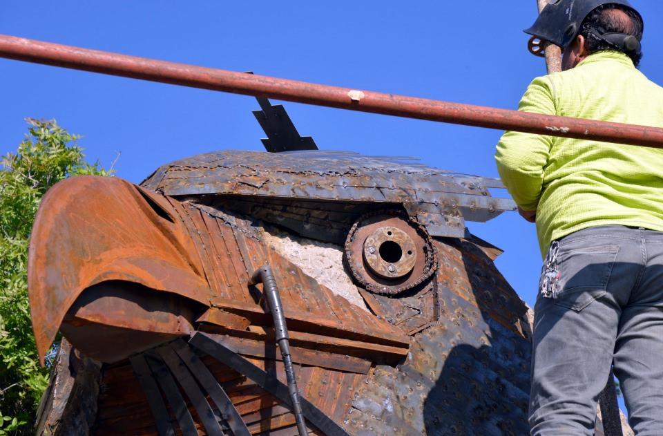 Otomobil parçalarından 'kartal başı heykeli' yaptı