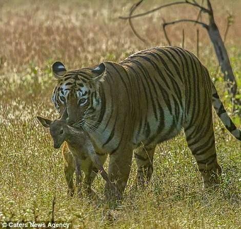 35 yaşındaki fotoğrafçı, yaşadıklarını şu sözlerle anlattı: "Kaplanın saklandığı yerden çıkıp geyik yavrusuyla oynadığını görünce hayret ettik. Kaplan neşeli duruyordu."