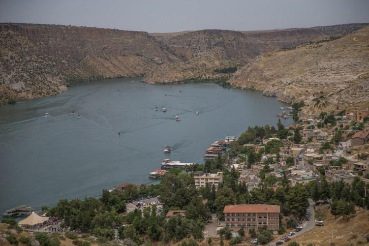 Güneydoğu'da bozkırın ortasında olmasına rağmen Birecik Baraj Gölü sayesinde sahil kenti görünümüne sahip Şanlıurfa'nın Halfeti ilçesinde turizm hareketliliği Ramazan Bayramı tatili dolayısıyla doruğa çıktı.
