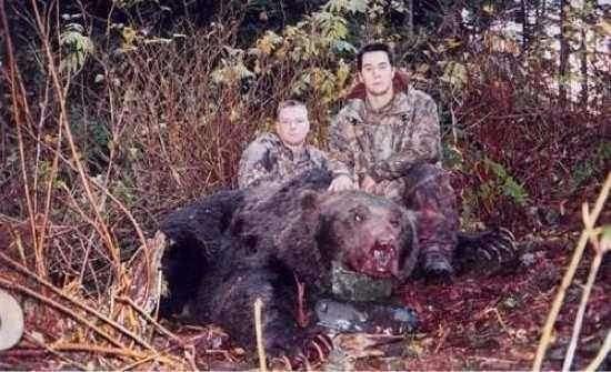 2001 yılının Ekim ayında Alaska'da çekilen bu fotoğrafta, Amerikalı pilot Ted Winnen tarafından vurulan boz ayı görülüyor. Winnen ayının kendisine saldırdığını ve kendini korumak için vurduğunu söylüyor. Bu boz ayı 3.2 m uzunluğunda ve yaklaşık 500 kg ağırlığındadır.
