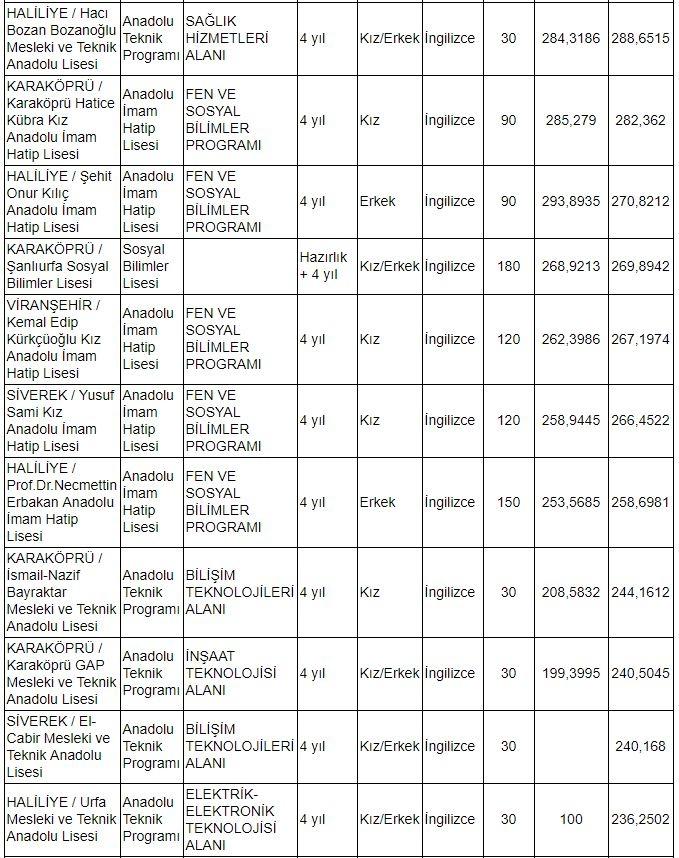 Liselerin taban puanları ve nitelikli okulların yüzdelik dilimleri