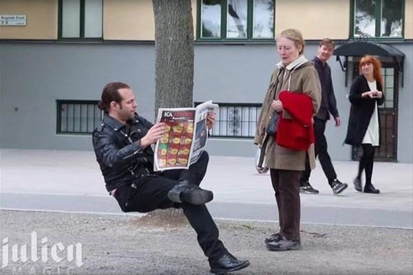 İllusionist bir sandalyeye oturur. Sonra asistanları sandalyeyi çıkarır, yani sihirbaz hareketsiz ve havada oturur.