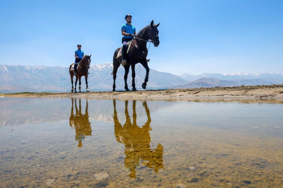 Van Gölü sahillerini atlı birlikler koruyor