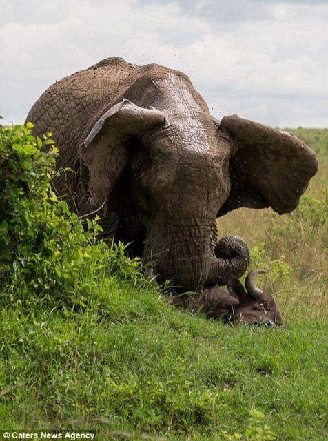 Bufalonun öldüğünden emin olana kadar ezdi.