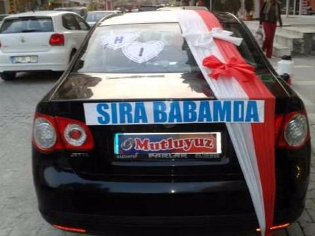 Gelin arabalarına yazılan ilginç yazılar güldürmeye devam ediyor.