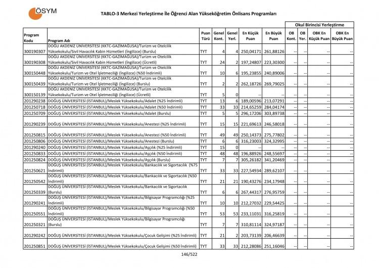 2 yıllık üniversitelerin taban ve tavan puanları