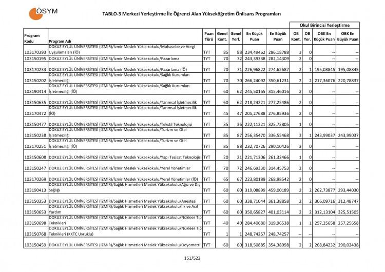 2 yıllık üniversitelerin taban ve tavan puanları