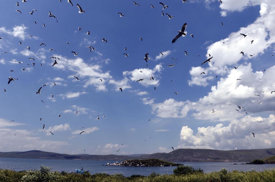 Üreme dönemi için bölgede bulunan göçmen kuşlar, uçmayı yeni öğrenen yavrularıyla gökyüzünde kanat çırparak sonbaharda yapacakları uzun göç yolculuğuna hazırlanıyor.