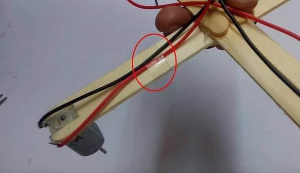 Daha sonra bantla kabloları çubuğa yapıştırdı.