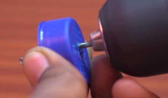 Ardından matkapla kapağın tam ortasından delik açıyoruz.