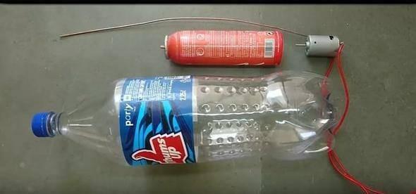 Pet şişelerle pek çok şey yapmak mümkün. Şimdi gördüğünüz pet şişe az sonra herkesin işine fazlasıyla yarayacak bir alete dönüşecek! Ancak bunun için önce pet şişe, küçük bir motor, maket bıçağı, makas ve teneke kutu gerekiyor!