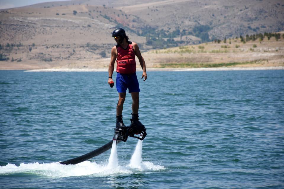 Akdeniz ve Ege Bölgesi'ndeki 5 yıldızlı otellerin sahil ve havuzlarında gösteriler yapan Ali Komşusu, jet skiye bağlı hortuma gelen suyun basıncıyla çalışan, su altında da itiş gücü olan ve üzerindeki kişiyi metrelerce yukarı taşıyan flyboard ile yaptığı estetik ve akrobatik gösterilerle dikkati çekiyor.