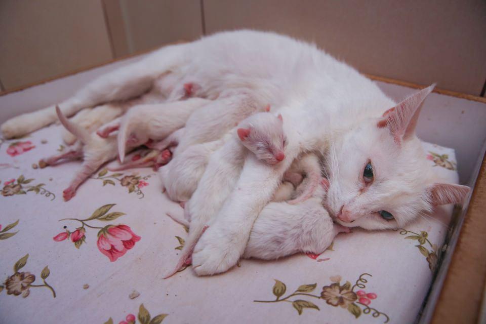 Van'ın 'Nazlı' kedisi 10 yavru doğurdu