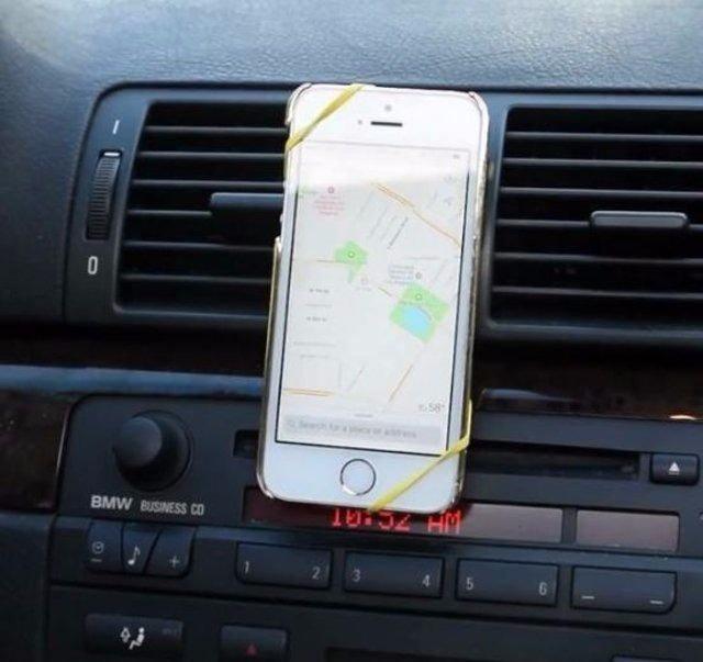 Daha sonra iki ayrı uçtan cep telefonunuzu çapraz şekilde lastiğin içine geçirin. İşte bu kadar kolay!