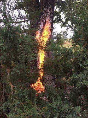 Yıldırım düşen bir ağacın yanması