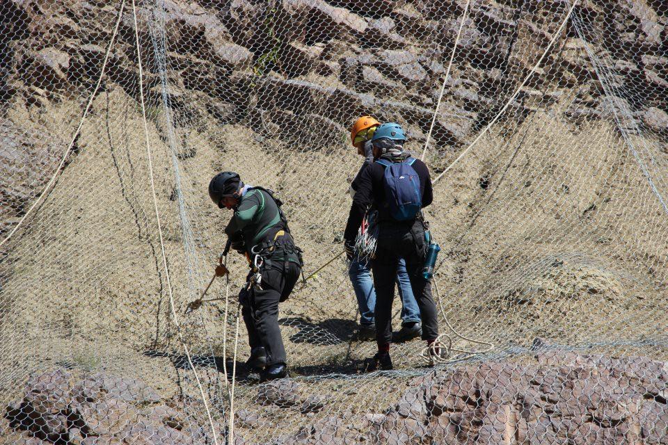'Örümcek adamlar' yamaçları çelik ağlarla örüyor