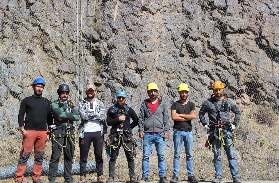 'Örümcek adamlar' yamaçları çelik ağlarla örüyor