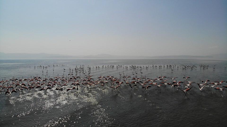 Van Gölü'ndeki flamingoların Afrika göçü başladı