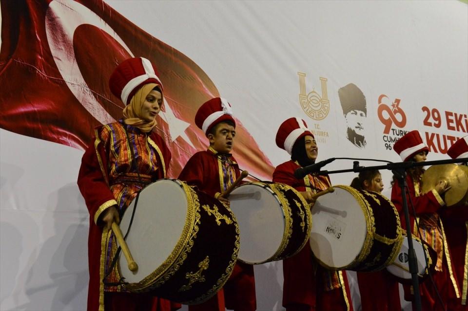 Şanlıurfa'da, 29 Ekim Cumhuriyet Bayramı, düzenlenen törenle kutlandı. Şanlıurfa Büyükşehir Belediyesi Engelli Mehteran Takımı, törende gösteri sundu.