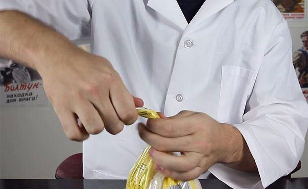 Yarım huni elde edecek şekilde peti kesiyoruz ve geriye kalan kısmı paketten geçiriyoruz.