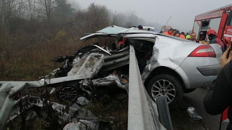 Düzce'de bariyere saplanan otomobildeki nişanlı çift yaralandı