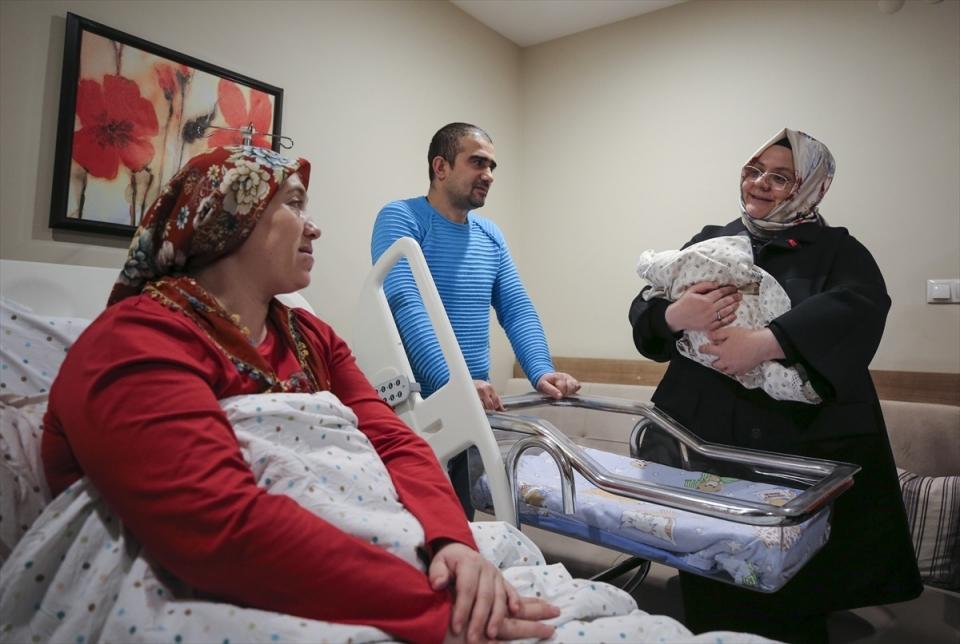 Sağlık Bilimleri Üniversitesi Etlik Zübeyde Hanım Kadın Hastalıkları Eğitim ve Araştırma Hastanesi'nde gerçekleştirilen doğumla ilk çocuğunu dünyaya getiren anne Büşra Şahin'i ziyaret eden Bakan Selçuk, "Yağız Ege" adı verilen bebeğin sağlıklı, mutlu ve huzurlu bir yaşam geçirmesini temenni etti.