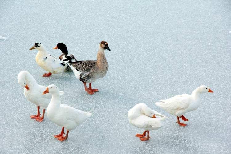 Göl de muhteşem güzel görünüyor. Havanın da soğuk olmasından dolayı buz tutmuş. Güzel bir kartpostallık görüntü var. Ördekler de buzun üzerinde kalmışlar.